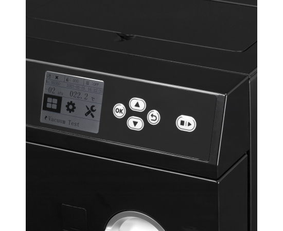 | 7 automatic programs | 4 sterilization programs, 2 test programs; Bowie & Dick, a vacuum test, and a drying program. |