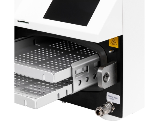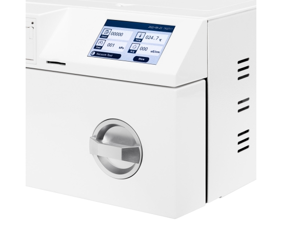 It is a compact device with a built-in thermal printer. The autoclave has a touch LCD display and an SD memory card slot where you can save the results of the cycle. It has 7 fully automatic programs; 4 sterilization programs, 2 test programs, and a drying program. The menu is intuitive and the user-friendly interface is in English. The pre-heating and keep warm function will also be useful. The Lafomed Touch 3L autoclave is distinguished by the availability of fast sterilization programs. The shortest cycle for sterilizing instruments takes 6 minutes, including drying, and for wrapped instruments only 8 minutes. The device has a built-in container for clean (distilled) water, which is used for sterilization, as well as a container for used water. The self-diagnosis system will effectively protect against damage and preserve the durability of the device.