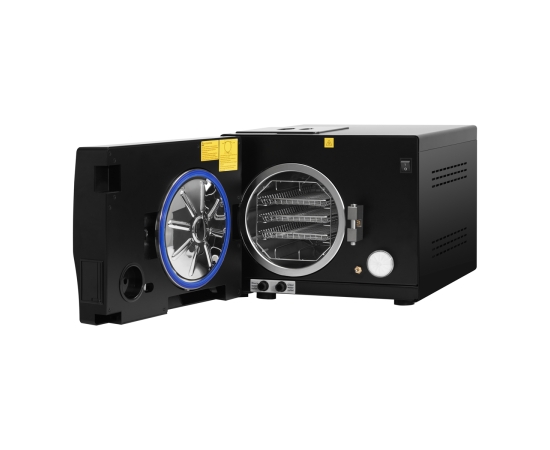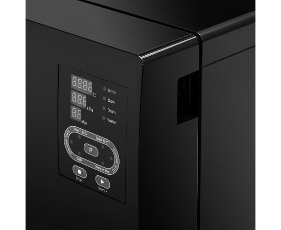 It is a compact device that combines the 8-liter autoclave with a built-in thermal printer. It has a LED display and USB port, which allows you to connect a flash drive to save the results of the cycle. It has 6 fully automatic programs; 4 sterilization programs and 2 test programs. The shortest sterilization program takes only 8 minutes including drying. The device has a built-in tank for clean (distilled) water for sterilization, and a tank for used water with the possibility of drainage at the front of the device. Self-diagnosis system will effectively protect against damage and preserve the durability of the device. Additional security is provided by the double door lock system.