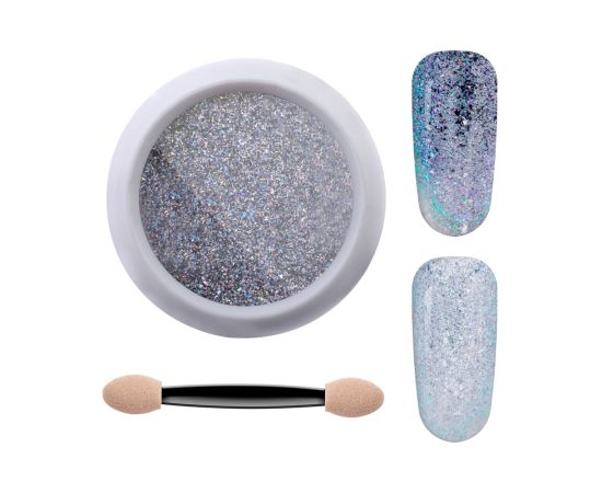 Amennyiben egy fényes és hatásos manikűrt szeretne, akkor ezt az egyedi díszítő dekor port ajánljuk. A felvitt színtől függően eltérő hatást fejt ki. A por használható gél lakkon vagy zselés manikűrön. Ennek a pornak a hatása nagyon különleges, szivárványszínű, ezért jelenleg az egyik csúcstrend a piacon. A porhoz egy kétvégű applikátor is mellékelve van.