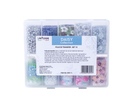 A minőség a legfontosabb, amelyre hangsúlyt fektetünk. Így a Lila Rossa Körömfólia - transzfer fólia köröm szett 10 Daisy Collection 11 termék gyártása és tárolása magas színvonalon történik. Tökéletes a TE manikűrödhöz!
