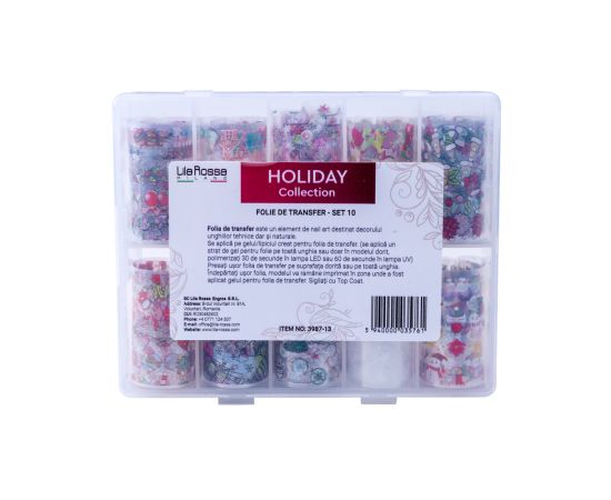 A minőség a legfontosabb, amelyre hangsúlyt fektetünk. Így a Lila Rossa Körömfólia - transzfer fólia köröm szett 10 Holiday Collection 13 termék gyártása és tárolása magas színvonalon történik. Tökéletes a TE manikűrödhöz!