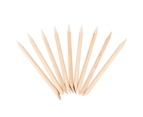 10 darabos pálcikakészlet - nélkülözhetetlen eszköz a körömművészet területén. Természetes narancsfából készültek, nagyon ellenállóak és kettős funkcionális végük van.