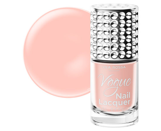 A Vogue Nail Lacquer selymes textúrájú, maximális fedést biztosít. A tökéletes kiegyenlítéshez és az erős színhez csak két réteget kell felvinni. Levegőn szárad, minden egyes rétegnél 60 másodperc szünet szükséges, így elegáns manikűrt kap.