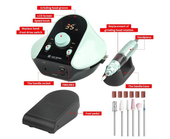 Ez egy többféle felhasználású csiszológép, amelyet professzionális technikusok és a körömápolás iránt érdeklődők egyaránt használhatnak manikűrhöz és pedikűrhöz.