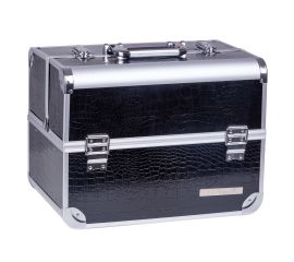 Kozmetikai táska kozmetikumok tárolásához, méretei 32x23x26 cm, Lila Rossa, fekete smink táska, műkörmös táska Alumíniumból készült táska ökológiai bőr bevonattal. Ideális sminkesek, körmösök vagy fodrászok számára, mivel nagyon tágas és könnyen szállítható. A táska 4 oldaltálcából és egy...