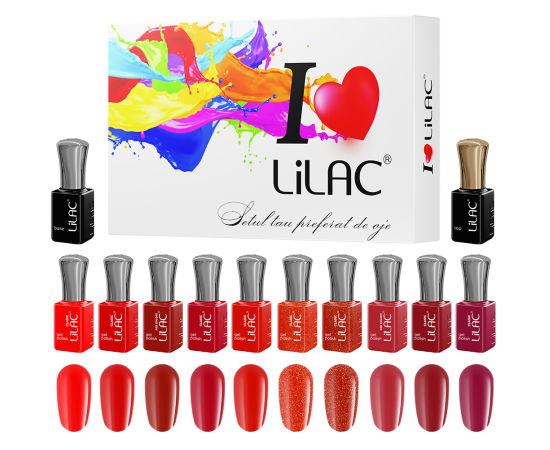 Gél lakk szett, 12 db Lilac gél lakk, Red colors, 10 szín + base coat + top coat, gél lakk kezdő szett