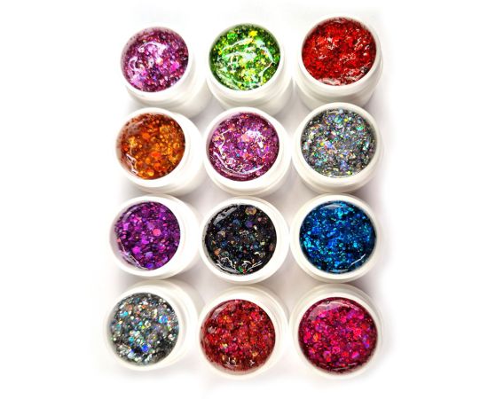 Színes zselé készlet 12 db - végső színréteg a köröm teljes felületén. A kívánt intenzitás eléréséig több rétegben is felvihető.