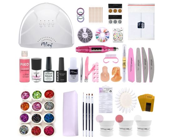 A Glitter Party zselé készlet minden olyan terméket tartalmazza, amely az UV zselés manikűrhöz szükséges. A termékek nagyon könnyen használhatóak és kiváló minőségűek, így akár személyes használatra is használhatóak, nem csak szalonokban. 35 termék, amely egy körömtechnikus elengedhetetlen készletét képviseli.