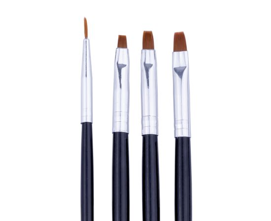 Miley ecsetek, 4 db-os szett - elengedhetetlen az UV zselé manikűrben. A legvékonyabb ecset a vékony vonalak rajzolására és festésre szolgál, a másik három pedig az UV zselé felvitelében segít. Kiváló minőségű szintetikus szőrből készült.
