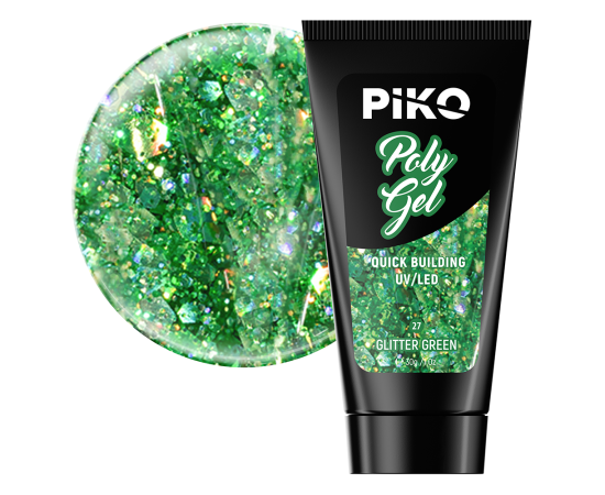 PIKO polygel color, akril gél, 30 g 27 Glitter Green