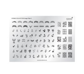 KONAD körömnyomda lemez Collection Image Plate 03 Használati útmutató: -Távolítsa el a kék fóliát a matrica felületéről. -Tisztítsa meg a matricát Cleanerrel vagy acetonnal megnedvesített szalvétával. -Vigye fel a körömlakkot a körömnyomdához a kívánt modellre. -A 45 fokos...