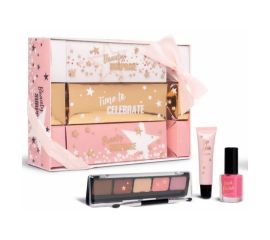 Smink paletta, smink készlet 21,5 x 14,3 x 5 cm 471.00 A készlet tartalma: 5 szemhéjfesték szín 1 két végű applikátor 1 körömlakk, 11 ml. 1 szájfény 12 gr.