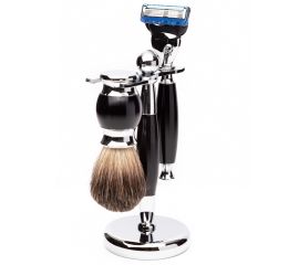 Férfi ajándék szett, borotválkozó szett Yoshimoto Royal Black Modern A "Royal Black Modern" borbélykészlet a Yoshimoto-tól, kiváló minőségű. Az erős, de ugyanakkor a megjelenésre is odafigyelő férfiaknak készült, akik értékelik a stílust. A borotvapamacs krómozott fémből és...