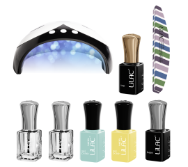 Lilac gél lakk szett, Start 6 db gél + lámpa 36 W + körömreszelő, gél lakk kezdő szett, Pastel colors, otthoni gél lakk szett