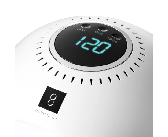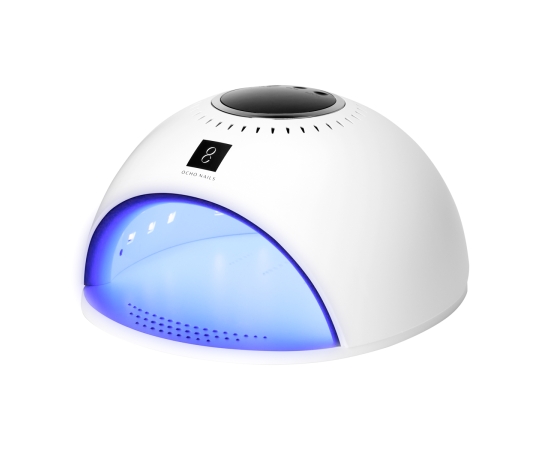 The Ocho Nails 8 nail lamp is a device that – equipped with practical functions – allows you to easily perform manicure and pedicure treatments using hybrid nail polishes, gels or other light-curing preparations. Evenly spaced LEDs and the Dual Led technology used guarantee perfect fixation of nail styling. Minimalist design, ease of use and useful functionalities make the lamp perfect for both professional and home use.