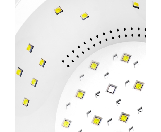 Perfect curing of gels and hybrid nail polishes is ensured by 42 appropriately arranged LEDs – without the so-called dead zone. The closed shape, so-called "booth", which was relied on in the design of this model, allows for more accurate and faster curing of nail styling. The Dual Led technology used makes the diodes emit light of two wavelengths, thus not tiring the eyes and providing the device with a wide spectrum of action. The selected solutions facilitate the proper curing of even the most demanding products, allowing you to reach even the more inaccessible areas on the nail plate.