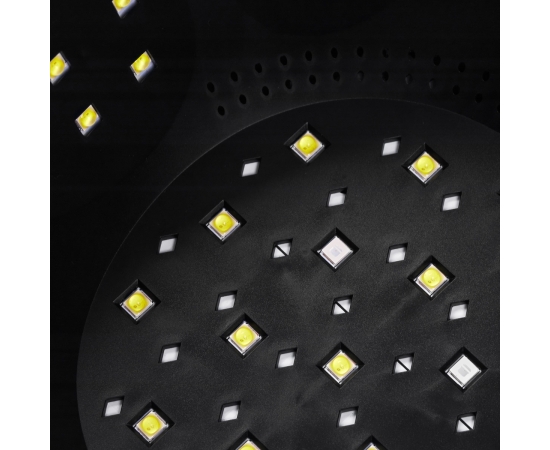 The lamp is equipped with a timer with three pre-programmed working times: 30 s, 60 s and 120 s (the so-called "Low Heat Mode"), which are counted down on a clear digital display. A built-in motion sensor automatically activates the lamp when the fingers of a hand or foot are placed under it, assuming a maximum exposure time of 120 s. This function works when no mode is selected, and the display shows the elapsed curing time. This allows you to freely choose the length of exposure to suit the styling you are doing at the moment. In addition, when the already mentioned "Low Heat Mode" system is selected, the lamp heats up more slowly during curing the styling, gradually increasing its power. This prevents the sensation of burning or heat during exposure. This is an irreplaceable function, especially when curing gels, which often causes discomfort when using other lamps available on the market.