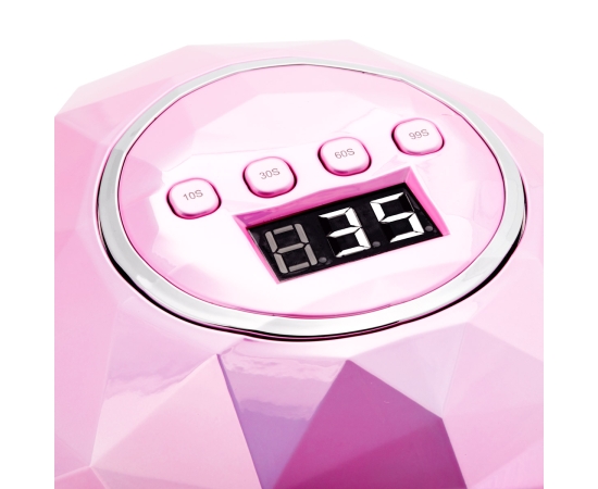 The latest generation, professional UV / LED lamp that quickly and evenly cures all gels, hybrid polishes and other light-curing preparations thanks to the use of dual led technology. It emits white light that does not tire your eyesight. The Shiny lamp has an energy-saving high-power light source and a dual wavelength of 365nm and 405nm. In addition, 39 LEDs that give a total maximum power of 86W! The lamp has a built-in motion sensor, a timer of 10, 30, 60 and 99 seconds, and after activating the sensor, it lights continuously for 99 seconds. 99 seconds "Low Heat Mode" is a mode in which the lamp power gradually increases every 30 seconds. It reduces the burning sensation during the application of builder gels. The large electronic display makes it easy to control the time.