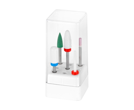 Choosing the right cutters is the key to comfortable and effective work with the nail drill machine. The cutter set included with the OCHO TECHNIC nail drill machine offers a variety of shapes and gradations, allowing you to easily perform a wide range of treatments. The set includes ceramic and sandstone cutters, which are suitable for both professional users and begginers. In order to expand the cutter collection with other shapes or gradations, we encourage you to take a look at the "cutters" tab.