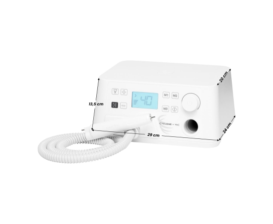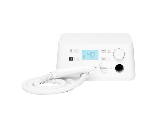 The Saeyang Marathon Cyclone-Vac – a high-end podiatric nail drill machine with an absorber – is a specialized device that allows you to maintain high hygiene standards in the practice, effectively protecting the health of practitioners and clients. The professional nail drill machine is designed for pedicures, especially dry treatment procedures carried out in podiatry, but it will also work well during manicures. The efficient head with the absorber and intuitive operation significantly improve the work of the podiatrist, facilitating the performance of a wide range of treatments.