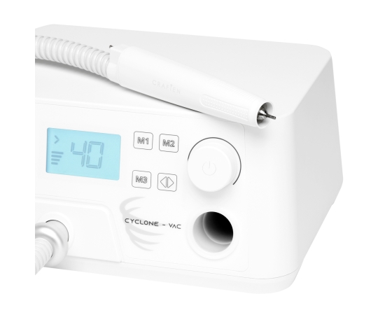 Adequate lung protection is the key to responsible and safe work of a podiatrist and maintaining high hygiene standards in the practice. The high suction power of the device makes it perfect for absorbing any dust generated during treatments. It is also possible to adjust the absorption on five levels and, if necessary, to turn off this function.