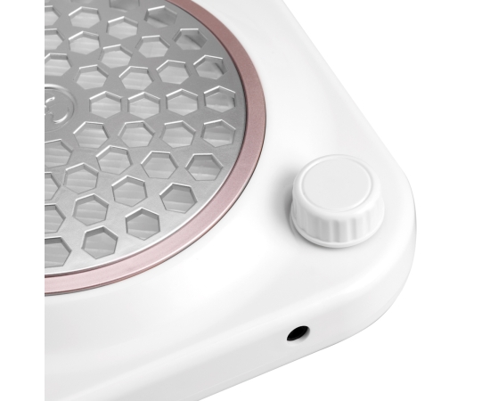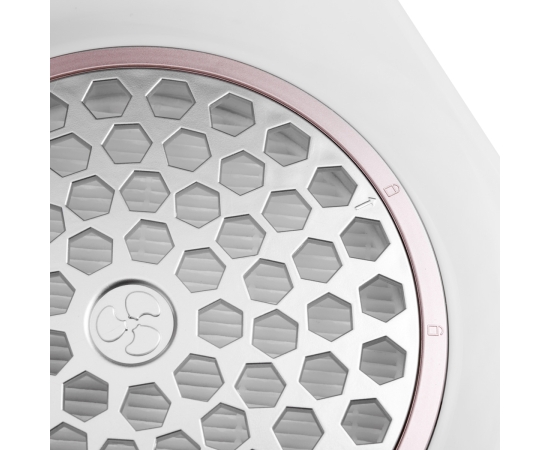 The lightweight design and small dimensions of the device ensure comfortable use in almost any conditions and will also prove suitable for mobile services. The streamlined, delicate shape of the absorber gives it an elegant appearance. A simple plastic base in shades of white, a semi-matte gray grille and a semi-matte rose gold decorative circle give the device a minimalist look and fit perfectly into any interior. The materials which are used guarantee durability and easy cleaning. Non-slip feet ensure the stability of the device during services.