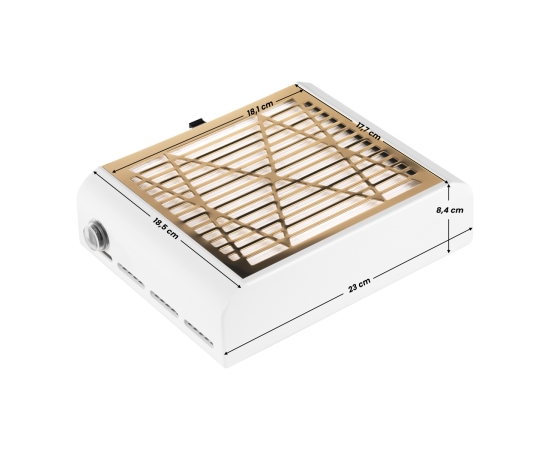 The Momo J-23 Gold cassette dust absorber is the perfect answer to the needs of nail stylists, effectively protecting the lungs of both employees and clients against dust generated during services. High power and efficient filter ensure the comfort of performing treatments such as manicure or pedicure.
