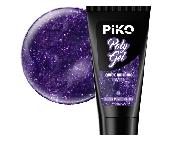 A Polygel rajongói a nap bármely időszakában megrendelhetik a PIKO polygel color, akril gél, 30 g 34 Glitter Purple Galaxy terméket.