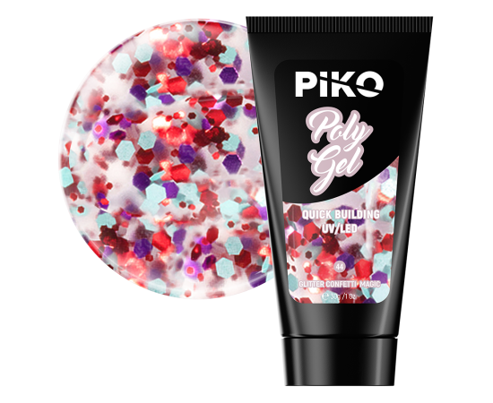 A Polygel rajongói a nap bármely időszakában megrendelhetik a PIKO polygel color, akril gél, 30 g 44 Glitter Confetti Magic terméket.