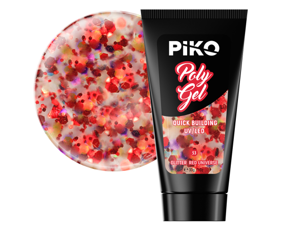 PIKO polygel color, akril gél, 30 g 53 Glitter Red Universe