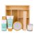 Női ajándék szett, Zuhanyolaj, kézkrém, masszírozó fa, illatosított gyertya, Bath set HOME SPA in wooden storage box, 100ml bath oil, 60ml hand & body lotion, fragrance candle, mirror, wooden massager, fragrance: Lotus & Jojoba, col. mint green/brown/white