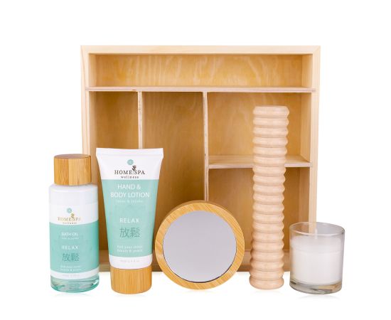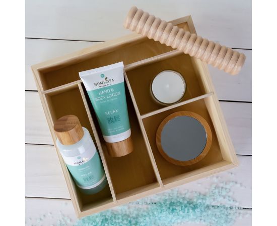 Női ajándék szett Bath set HOME SPA in wooden storage box