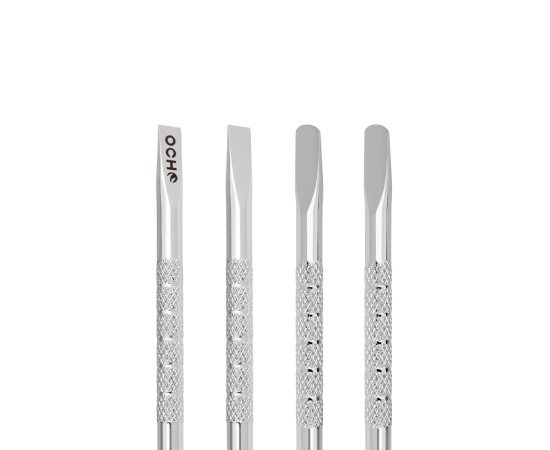 Ocho Pro Cuticle Pusher is perfectly suitable for manicure and pedicure. It is used to wipe the epidermis and to effectively move cuticles, pellets and any gel and acrylic residues from the nail plate.