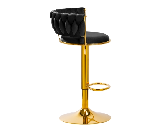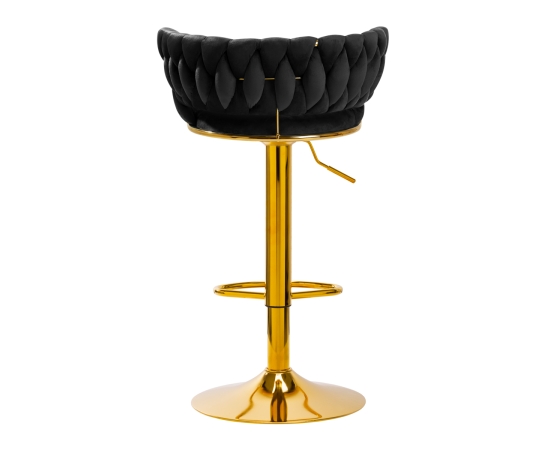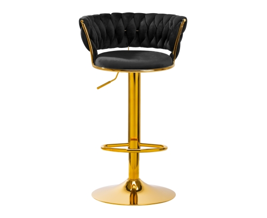 Pleasant-to-the-touch, velvet upholstery in shades of black gives the hocker a unique character, and the aesthetically intertwined fabric on the backrest emphasizes the unique look of the furniture. The finish makes the piece of furniture catch the eye. The frame in shades of gold adds elegance and prestige, perfectly matching the velvet.