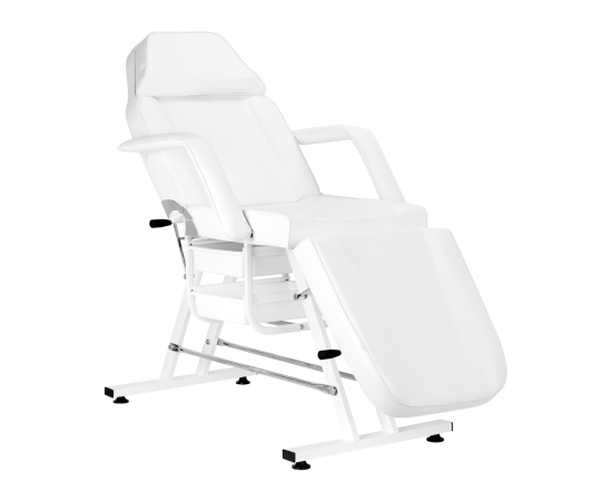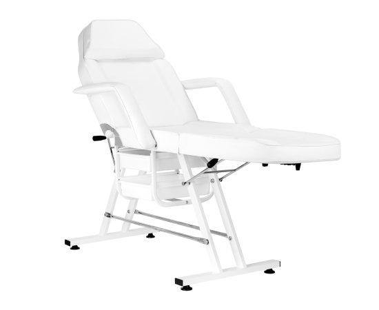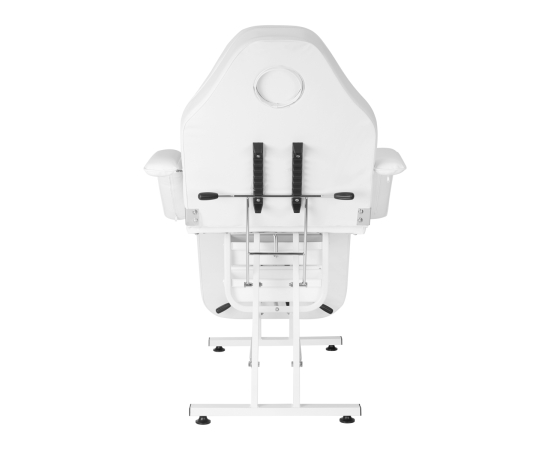 The hole in the headrest, hidden under a properly profiled pillow, makes the chair perfect for both face and back treatments. Stable armrests guarantee the user adequate support. These elements, which are divided in half, are movable, so they fit well when changing the position of the backrest, and additionally they can be easily removed.