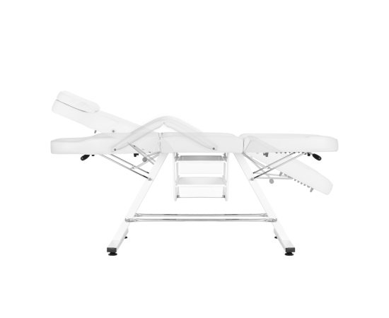 Gradual adjustment of the angles at which the footrest and backrest are located is provided by a special mechanism. Using a manual lever, you can smoothly adjust the positioning of the chair. This allows for optimal adjustment to individual needs, for proper and comfortable performance of treatments and high comfort of use. The chair can be unfolded up to the reclining position, which significantly increases its functionality. This allows you to freely perform various types of treatments in the field of among others cosmetics, physiotherapy or tattooing.