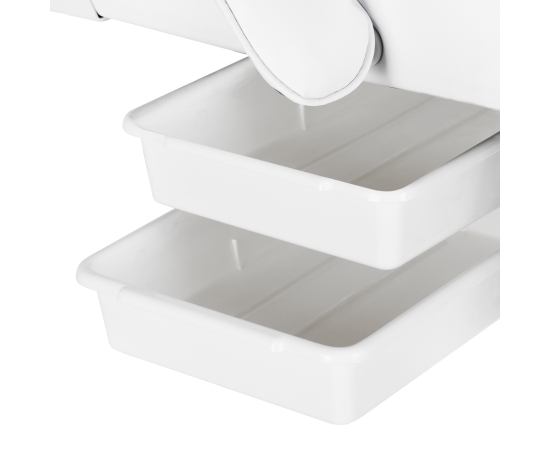 Plastic trays mounted under the seat provide easy access to the most necessary instruments. Thanks to the materials used, the pull-out containers are durable and easy to clean. Capacious drawers significantly increase the comfort of work, and additionally help to keep the workplace tidy.