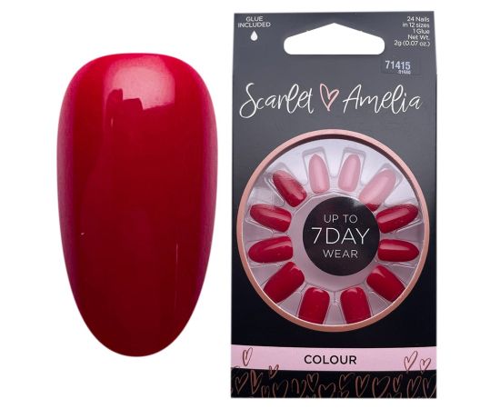 Színes műköröm Tip-ek press-on, Scarlet & Amelia Date Night Red, 24 db + Műköröm tip ragasztó