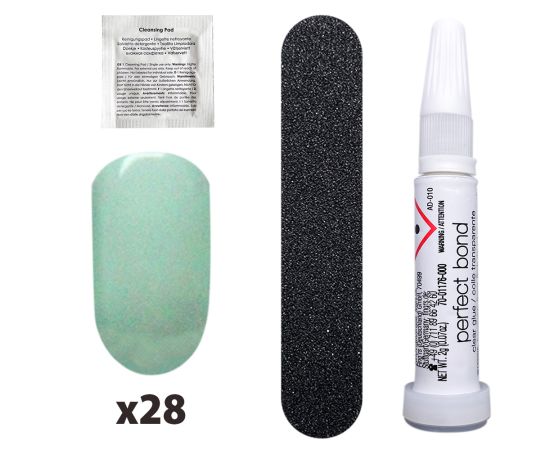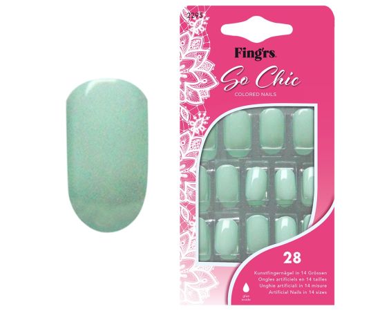 Színes műköröm Tip-ek press-on, So Chic Colored Nails, Mint High Gloss, Fingrs, 28 db + Műköröm tip ragasztó + Körömreszelő + Fapálcika