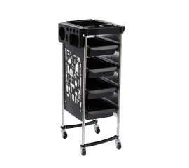 black hairdressing assistant with 2 lockable key shutters, 4 litter boxes and 15 compartments for hairdressing assortment. stable construction will ensure long-term use. table mounted on wheels, thanks to which the tools will always be at hand.  helper with parts for...