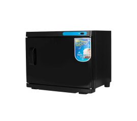 professional towel warmer with uv sterilizer, useful in spas, larger beauty salons and massage parlors. substantial internal sizes allow you to place a dozen or so towels of various sizes.  the device has a sensor that deactivates the sterilizer when the door is opened....