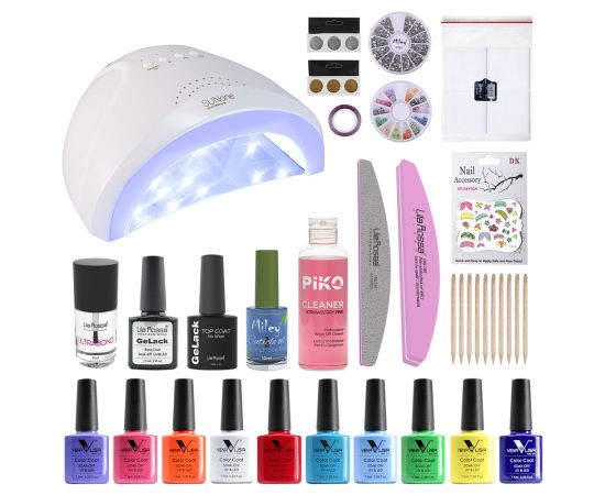 Venalisa gél lakk szett, 10 db gél lakk Summer colors + sunone lámpa, otthoni gél lakk szett lámpával és igazi nyári színekkel